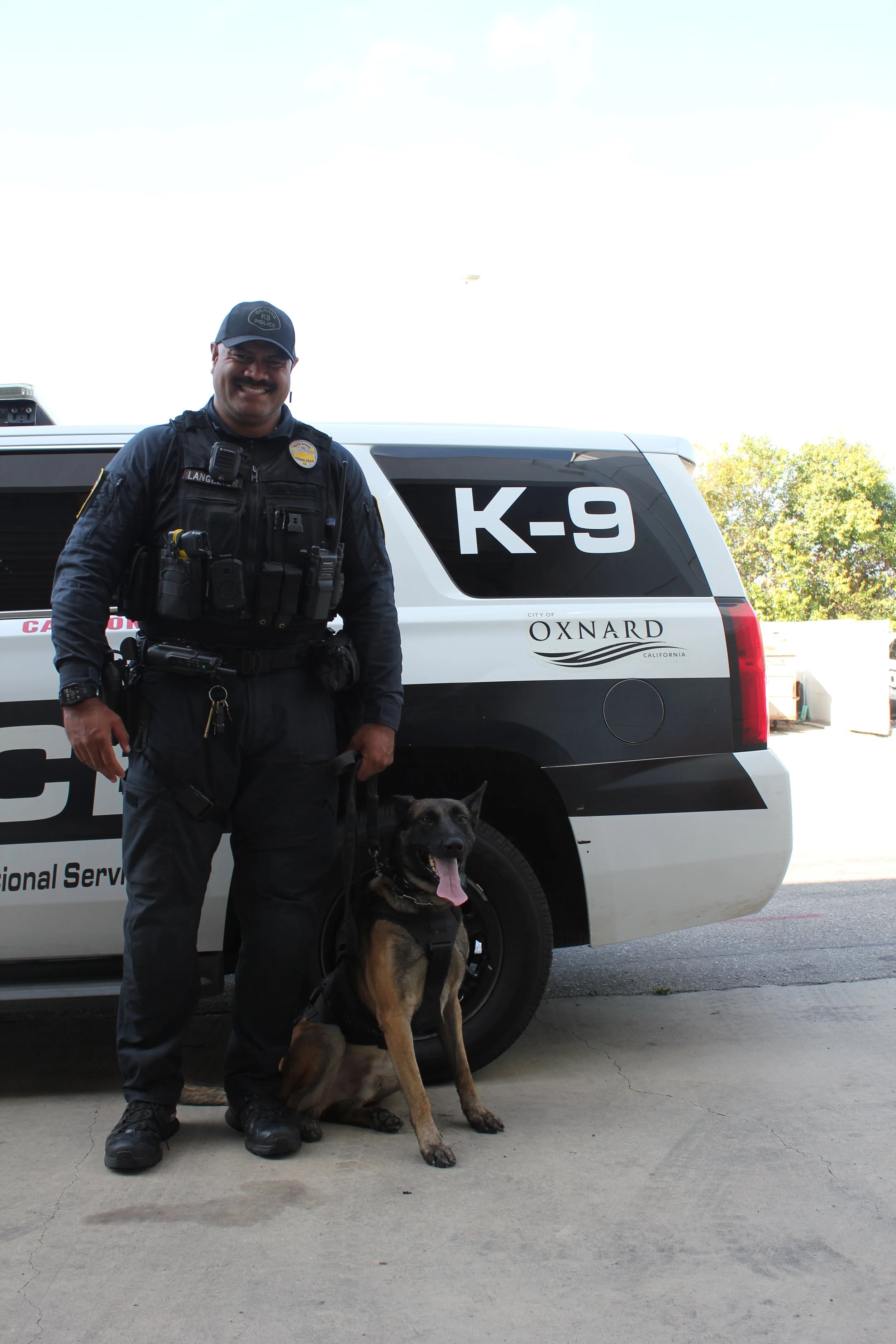 Alpy’s handler Oxnard Police Department Officer Nathan Langelier, was hired with OXPD in October 2013, and started patrol in 2014. He has worked in many assignments, including: Patrol, Beat Coordinator (Neighborhood Policing Team), Defensive Tactics Unit, Explorer Advisor, Homeless Liaison Officer, and he's excited about his newest assignment on the K-9 Unit.